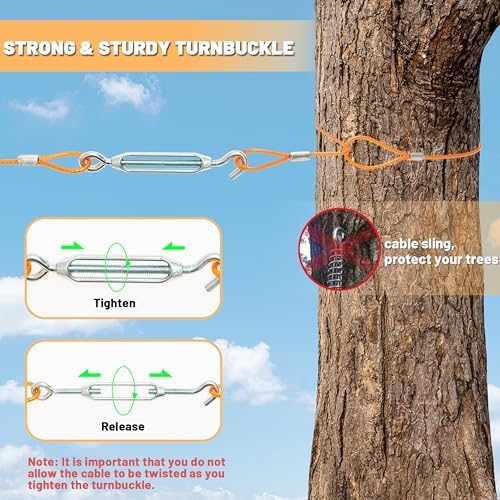 Usage Scenarios: This 100ft dog cable can prevent dogs from accidentally getting lost in the wild, garden, courtyard and other outdoor areas. You can install it between trees using a cable sling (which won’t hurt the trees), or use screw hooks to drive into walls and other places where it can be fastened. Meet the needs of dogs for running and playing. You can use it for dog training, behavior modification, chase circuit games and more.
