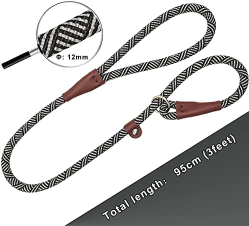 3 FT Slip Lead Dog Leash, 1/2 inch Rope Dog Walking and Training Lead, No Pull Strong Nylon Leash Great for Medium and Large (Black)