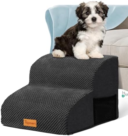 Topmart High Density Foam Pet Steps 2 Tiers,11.8″ High,Non-Slip Dog Stairs&Ramp,Soft Foam Dog Ladder,Best for Dogs Injured,Older Cats,Pets with Joint Pain,Suitable for Low Sofas,Stairs,Lower Place