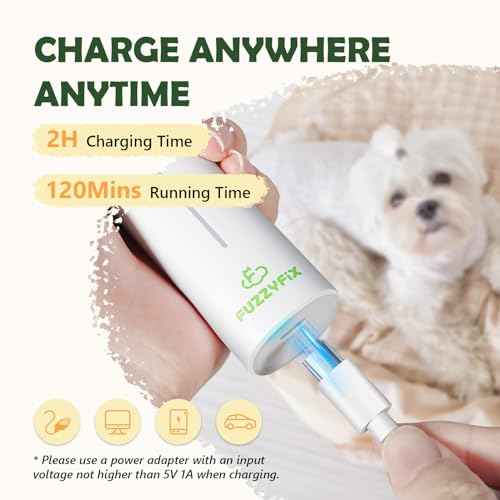 【Easy to clean and Convenice Charge】The trimming heads are detachable, allowing for easy cleaning under running water directly. The USB charging design can be charged through the mobile phone adapter, computer, mobile power supply, etc. Offering up to 2 hours of usage on a full charge, and the wireless design allows for grooming your pets wherever you prefer