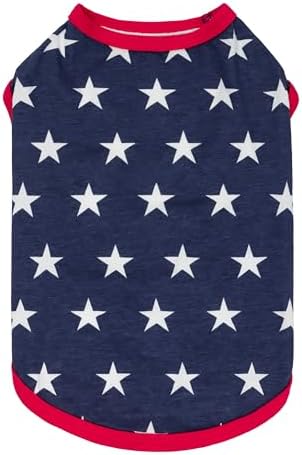 Fitwarm Patriotic Star Dog Shirt for 4th of July, Memorial Day, Independence Day, Holiday Dog Clothes for Small Dogs Boy Girl, Pet Cat Outfit, 100% Breathable Cotton, Red, Navy Blue, White, Large