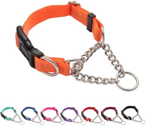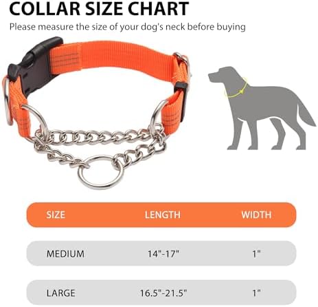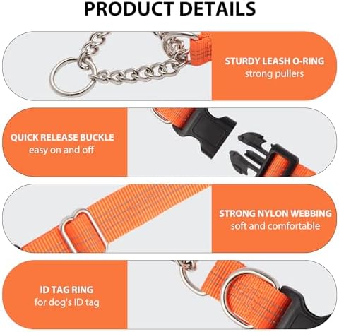 Martingale Dog Collar with Quick Release Buckle Steel Chain No Pull Training Reflective Collar for Medium Large Dogs(Orange, Large)