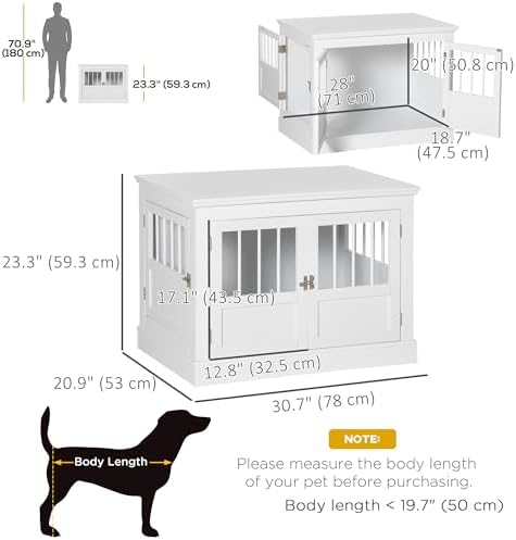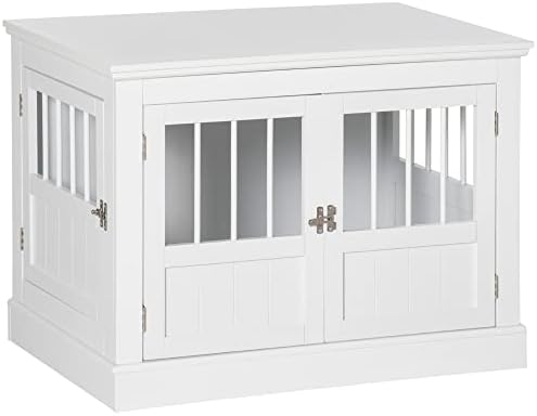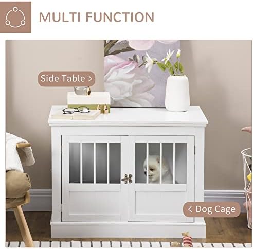 PawHut Dog Crate End Table with Triple Doors, Wooden Dog Crate Furniture Indoor Use, Puppy Crate for Small Dogs, White