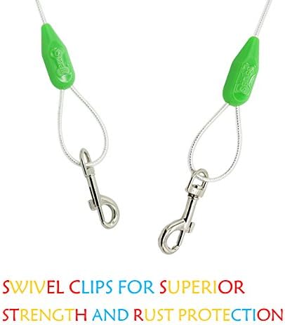Steel cable and swivel clips for superior strength and durability.
