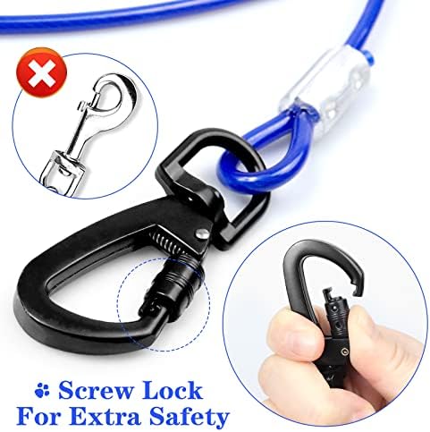 Durable Superior Clip: The dog leads for outside has 360°free-rotating clip, which is lightweight, durable and rust-proof. Both ends will be easily connected to the ground pillar or screw pile. The spiral ring lock is used to ensure pet’s outdoor safety.