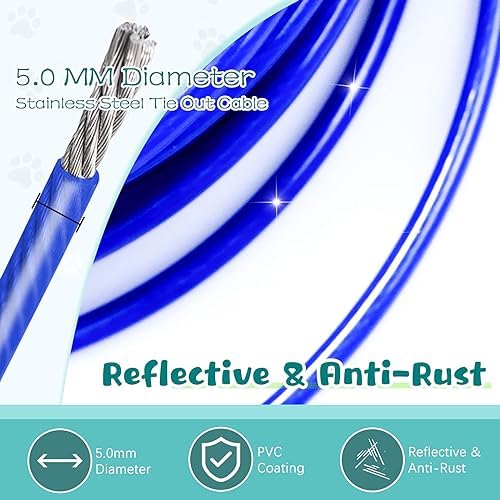 Tie Out Cable for Dogs, 50FT Dog Leads for Yard Chew Proof, Heavy Duty Dog Tie Out Cable for Large Dogs Up to 250lbs, Durable Dog Runner for Yard or Camping